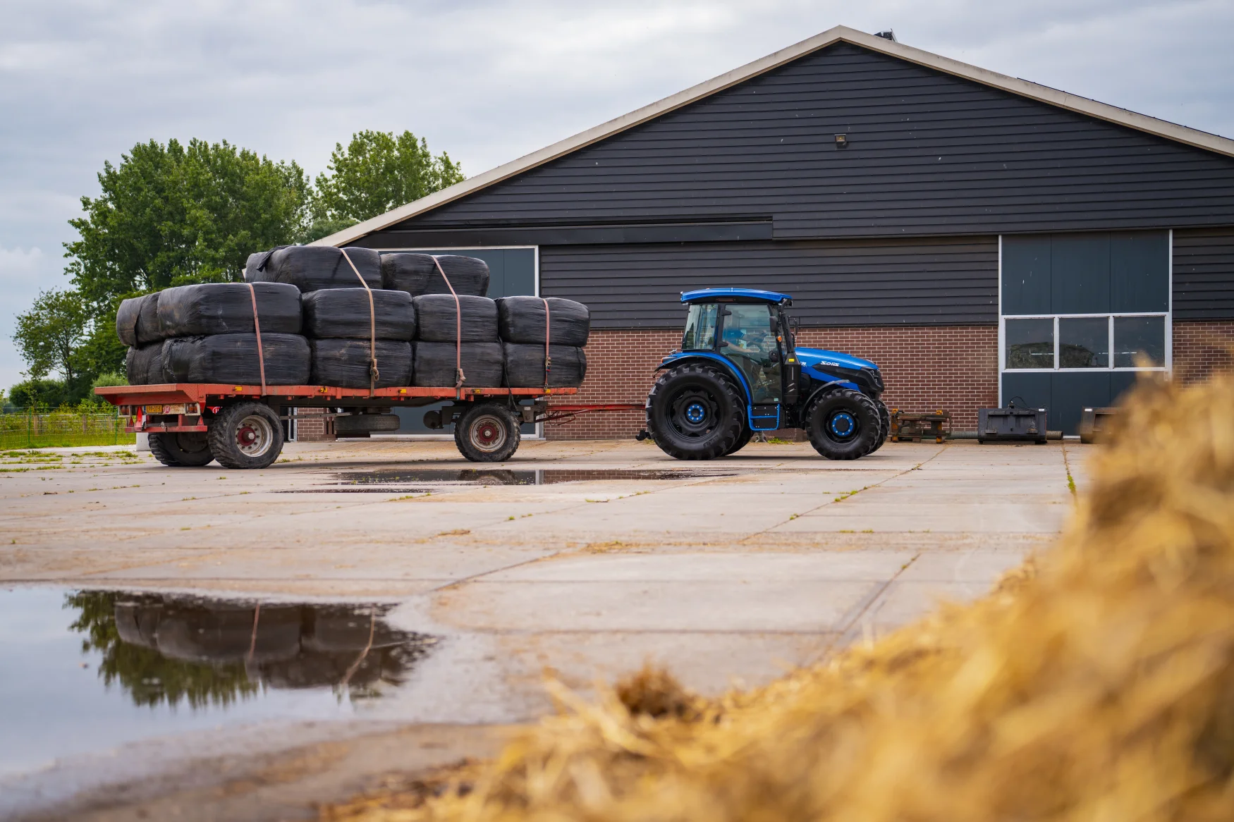 Tractoren leggen in Nederland relatief veel kilometers af op de verharde weg, dus moeten de banden daar tegen kunnen en niet te veel slijten.